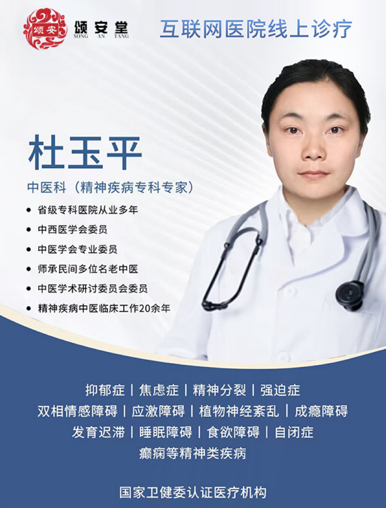 我添加颂安堂中医杜主任的微信后,我还特意去网上查了主任的资料,我发现主任省级专科医院从业多年,师承多位名老中医,拥有20余年精神疾病临床工作经验。